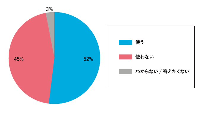 本アンケート調査で「AIを使う」と回答いただいた割合は以下となりました。